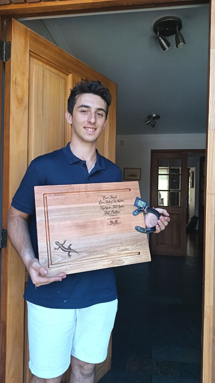 "La pedí para un regalo de cumpleaños ya mi pareja le encantó. El detalle de la herradura como mango es súper original y le da un peso que da confianza al cortar. Le pongo 4.5 estrellas solo porque Blue Express se demoró un día más de lo previsto, pero la atención de KAMOO por WhatsApp fue impecable en todo momento."